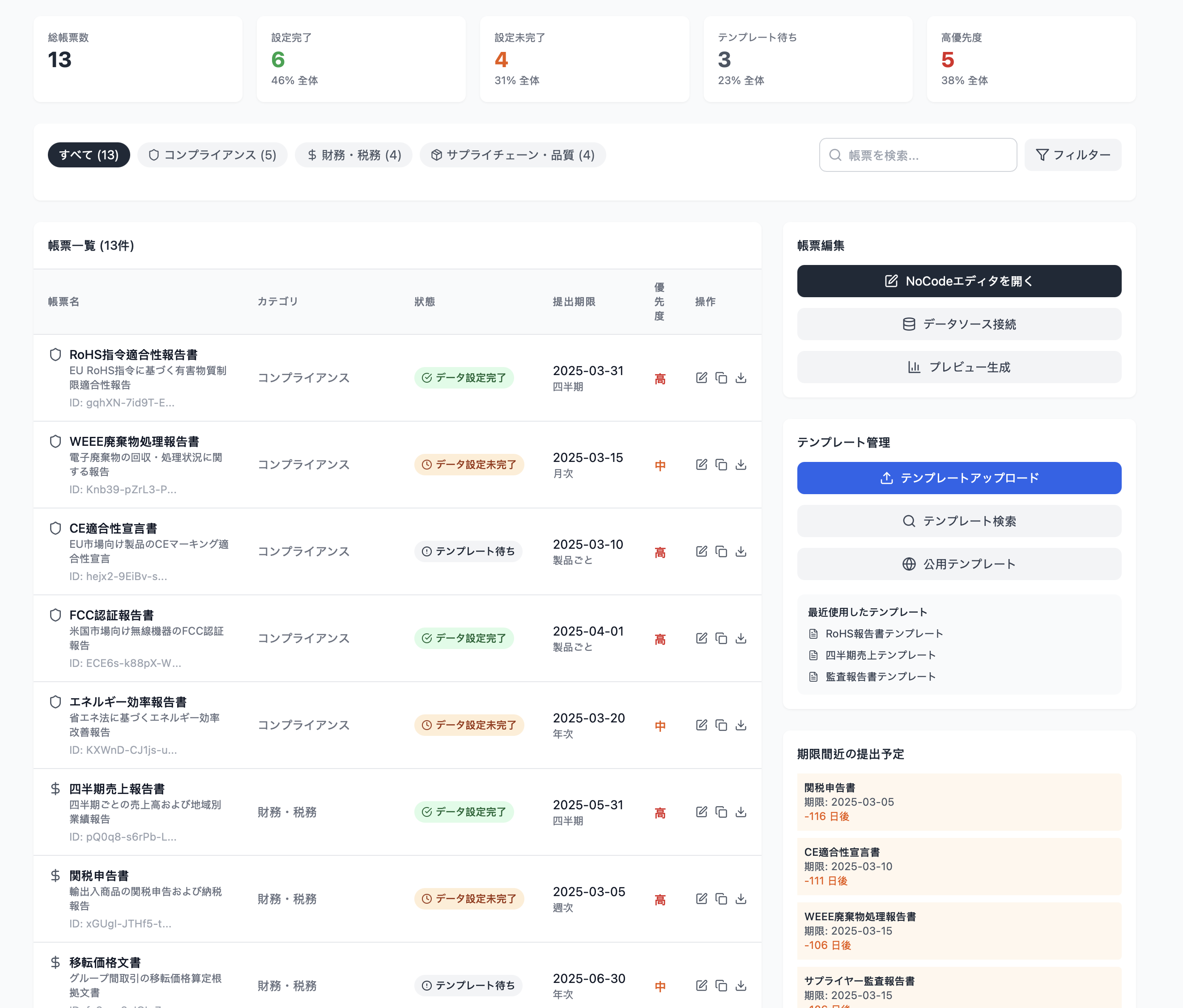 さらに、グローバルに事業を展開する企業向けには、TrackOneが各国の最新の報告様式や制度改正情報を随時取り込み、その情報に基づいた帳票テンプレートを自動更新・提供する仕組みを構想しています。たとえば、欧州で新たに義務化された通関書式や、東南アジアでの規制変更があった際にも、TrackOneが第一時間帯で更新を反映し、最新の形式で出力を支援することで、国際的な法令遵守と業務継続性を両立させるサポートを実現します。