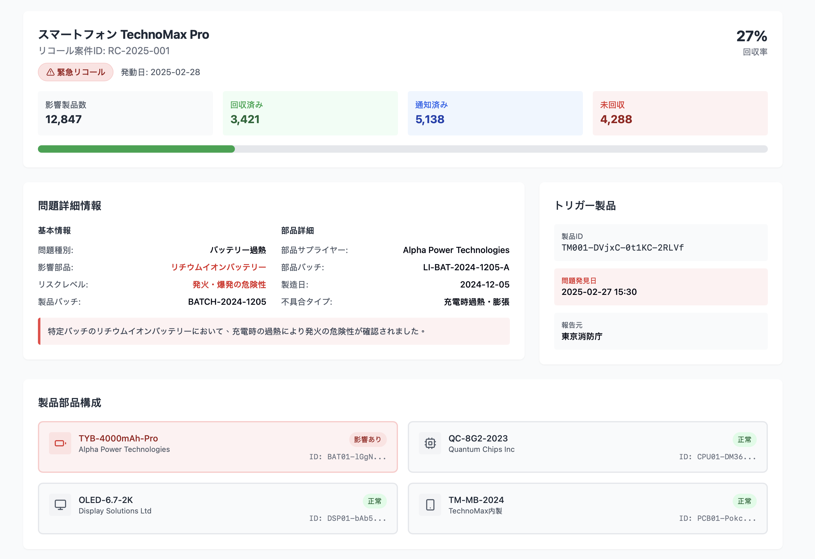 リコール対応に強い企業は、単に危機を乗り越えるだけでなく、市場での信頼を逆に高めることができます。危機は、正しく対応できれば、信頼へと転化する。そのために必要なのは、判断の速さではなく、判断に必要な情報が「すでに揃っている」ことなのです。